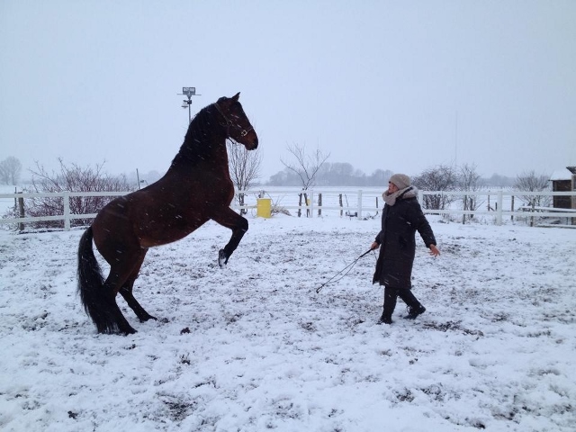 Einige Wochen lang war es leider unmöglich, auf unserem vereisten Platz zu reiten – ab und zu war höchstens die Arbeit im Schritt möglich.