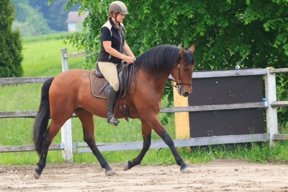 Ich versuche, unser gemeinsames Training so abwechslungsreich wie möglich zu gestalten: Gymnastizieren von Veneroso durch Boden- und Freiarbeit, Arbeit an der Hand, Equikinetic, regelmäßiges Reiten (Dressur, Trail, Gelände) und einmal im Monat Unterricht bei Esther Anna Maria Maurer (in der Vergangenheit bei Christina Wunderlich).