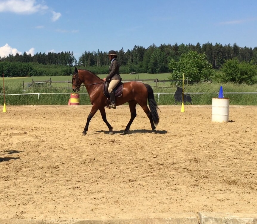 - Juni 2015 : unser 1. Working Equitation Turnier! Glücklich: Dressurtrail beendet, Gruß an die Richter