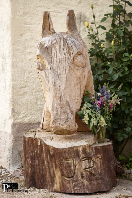 - Diese schöne Skulptur von Jens Röser steht auf dem Gelände von Pferdeland Kreut
